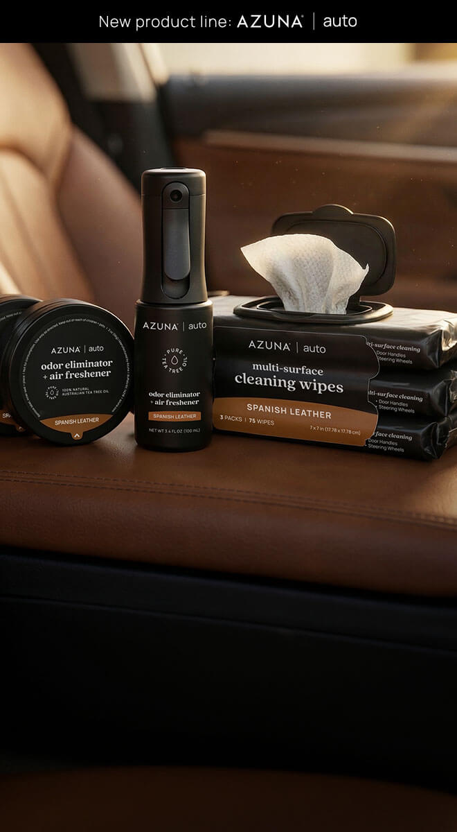 Azuna uses pure, organic Australian tea tree oil to effortlessly clean, freshen, and eliminate unpleasant odors.