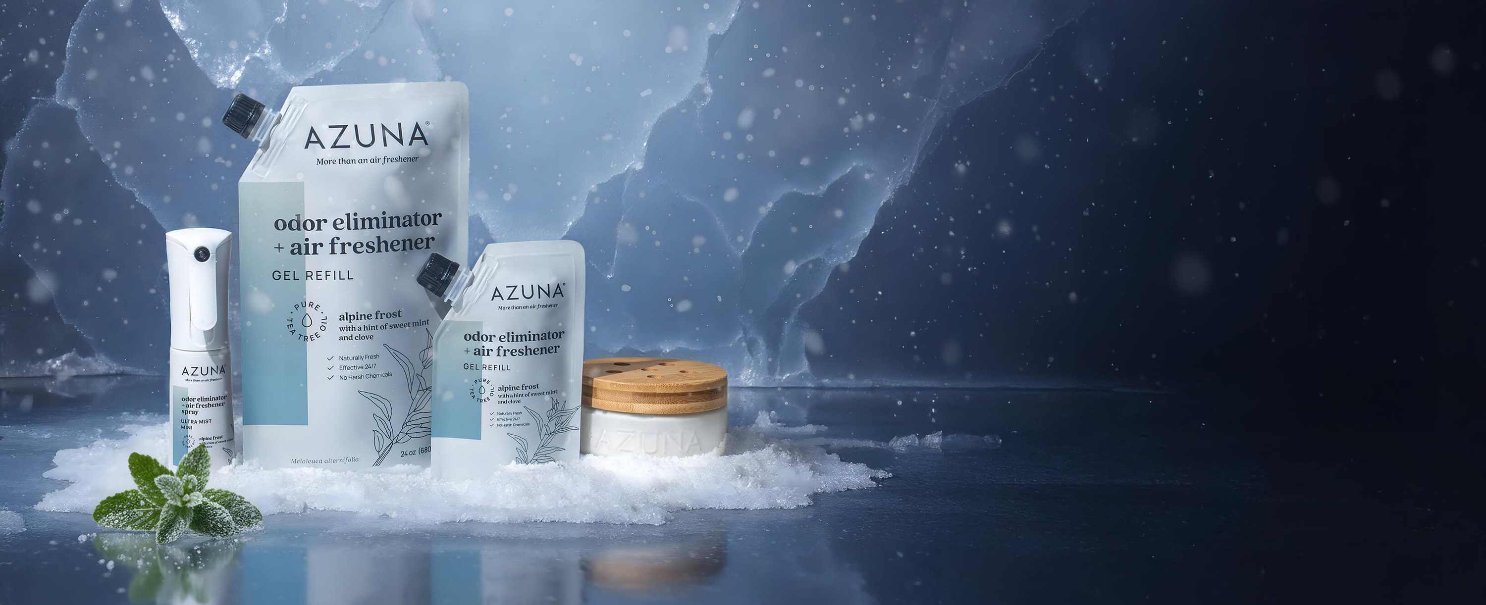 Alpine Frost is ready for every moment: our signature odor-eliminating gels are ideal for steady, long-lasting freshness, while our Ultra Mist Minis deliver an instant, fragrance-forward boost wherever (and whenever) you need it.