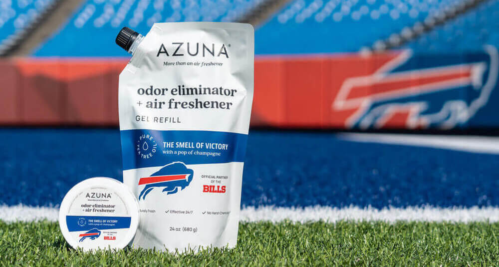 The Smell of Victory, created with the Buffalo Bills, celebrates every gameday with fruity, floral notes of champagne over crisp tea tree oil.