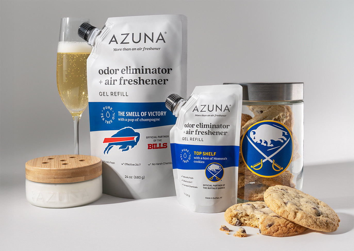 The Smell of Victory, created with the Buffalo Bills, celebrates every gameday with fruity, floral notes of champagne over crisp tea tree oil.